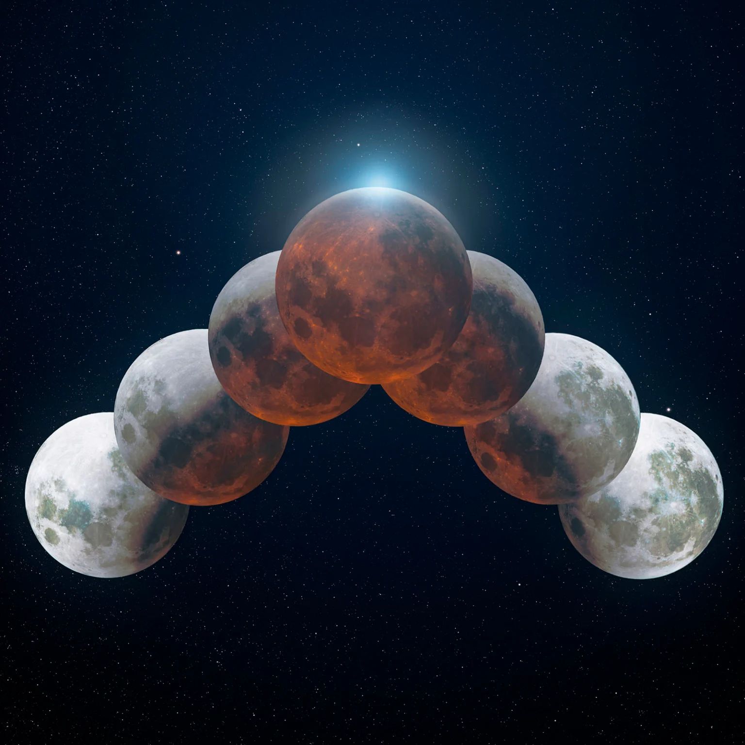During totality, the Moon will turn a deep red because of the way Earth’s atmosphere bends and filters sunlight. The shorter blue wavelengths of light get scattered away — the same exact process that turns our daytime sky blue. Conversely, the red and orange wavelengths are able to pass through the atmosphere and reach the Moon. In essence, every single sunrise and sunset on Earth is being projected onto the Moon at once.
